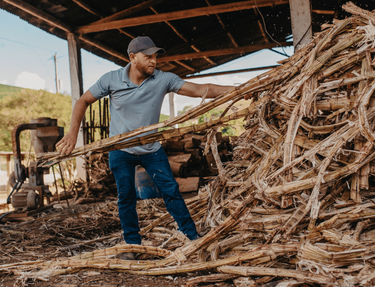 Nous valorisons la bagasse de canne à sucre et des substrats mycéliens pour créer un paillage biofertilisant. Ce produit local enrichit les sols, améliore leur structure et leur capacité de rétention en eau, tout en fermant la boucle des déchets agricoles.